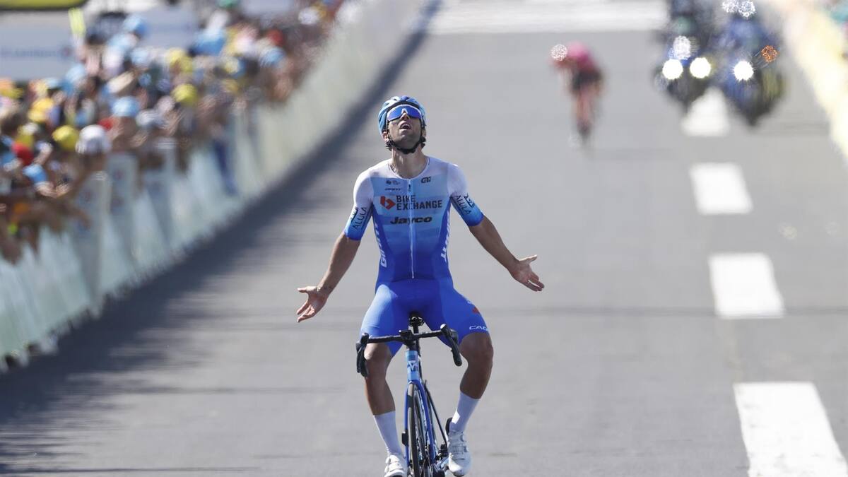 Matthews (Canberra, 31 años), dos veces segundo en este Tour, logró su ansiada victoria en solitario, la cuarta en su palmarés en la 'grande boucle', siendo el mejor de la escapada de 23 corredores de la escapada del día. Aterrizó en el aeropuerto de Mende con tiempo para desplegar su coreografía particular, feliz, incrédulo, brazos en alto, con un tiempo de 4h.30.53, a una media de 42,6 km/hora.