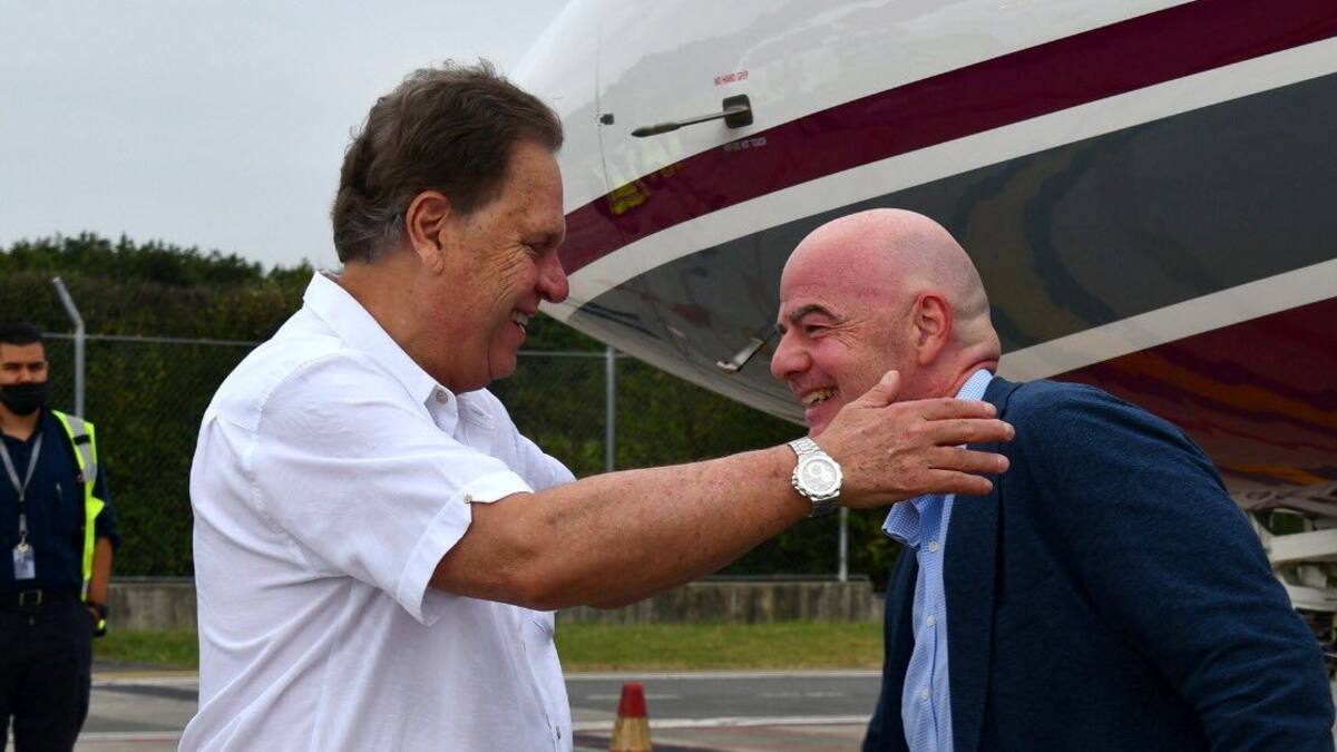 Infantino aterrizó en un avión privado y fue recibido en la misma pista por el barranquillero Ramón Jesurun, presidente de la Federación Colombiana de Fútbol (FCF), y por Robert Harrison, presidente de la Asociación Paraguaya de Fútbol.