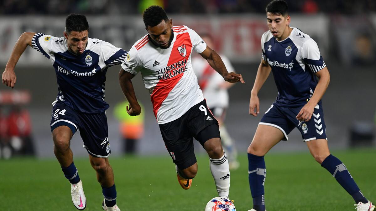 Miguel Ángel Borja debutó con River Plate en la victoria 1-0 sobre Gimnasia y Esgrima de la Plata, este jueves en un estadio Monumental a reventar.