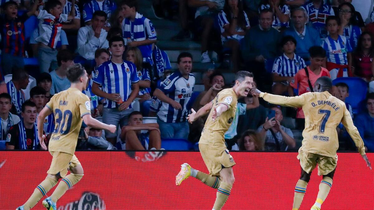 El delantero polaco del Barcelona Robert Lewandowski fue el gran protagonista este domingo en la victoria azulgrana en su visita a la Real Sociedad con dos goles y una asistencia que fueron claves para que los catalanes sumasen su primer triunfo de la presente temporada (4-1).