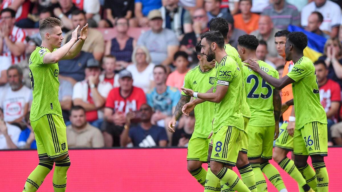El United, con el danés Christian Eriksen al mando, irrumpió con más convicción, con otro talante al inicio de la segunda parte. Pronto cercó el área de Bazunu aunque en una acción combinada en el 55 un centro desde la derecha de Diogo Dalot fue culminada por Bruno Fernandes que entró solo en el área y casi desde la frontal, ejecutó un tiro sin caer el balón que superó a Bazunu.