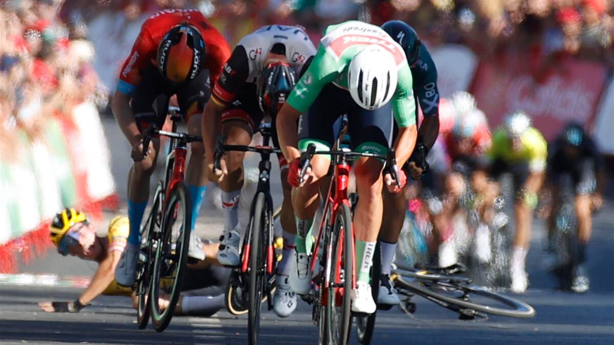 Mientras Pedersen gritaba de euforia, Roglic, que disputada el esprint entre cinco, bramaba de dolor. El esloveno, que rompió la carrera a 2,6 km de meta, se estrelló contra el asfalto. Rodilla y brazo derechos ensangrentados. Sentado en el suelo lamentaba su infortunio. Iba por la Vuelta y entró en el túnel de las dudas ante el alcance de sus lesiones.
