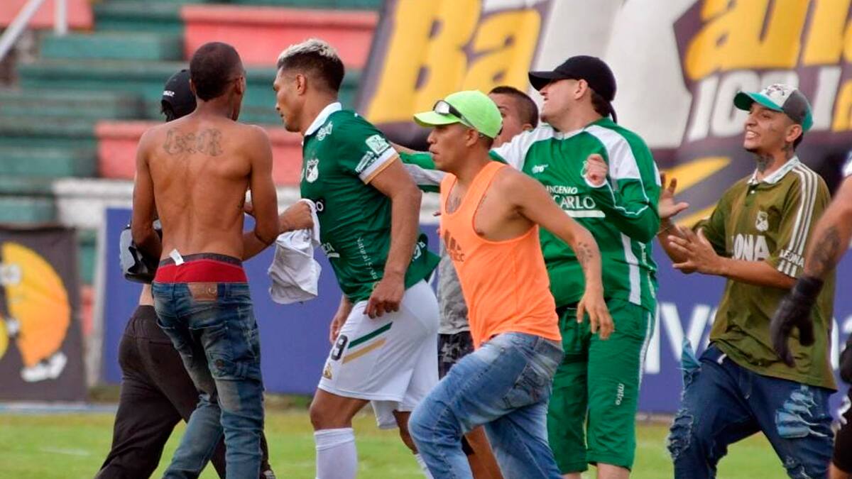 Los seguidores del cuadro caleño traspasaron la seguridad y se fueron en contra de la mayoría de los futbolistas y del entrenador Mayer Candelo, quien, según la transmisión oficial de televisión, fue golpeado por los simpatizantes