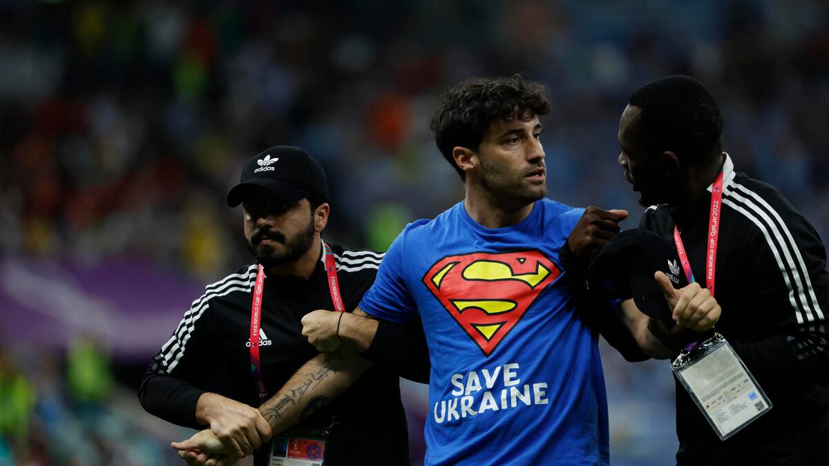 En el minuto 51 del partido del Grupo H de Qatar 2022, el espontáneo saltó al césped con la bandera en una mano y recorrió el terreno de juego. La enseña se le cayó en su carrera cuando era perseguido por las fuerzas de seguridad y el árbitro Alireza Faghani la recogió del suelo.