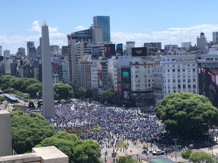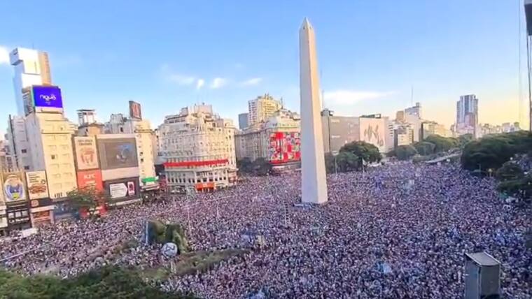Aficionados argentinos se reunión alrededor Obelisco tras la obtención del tercer título mundial de su selección.