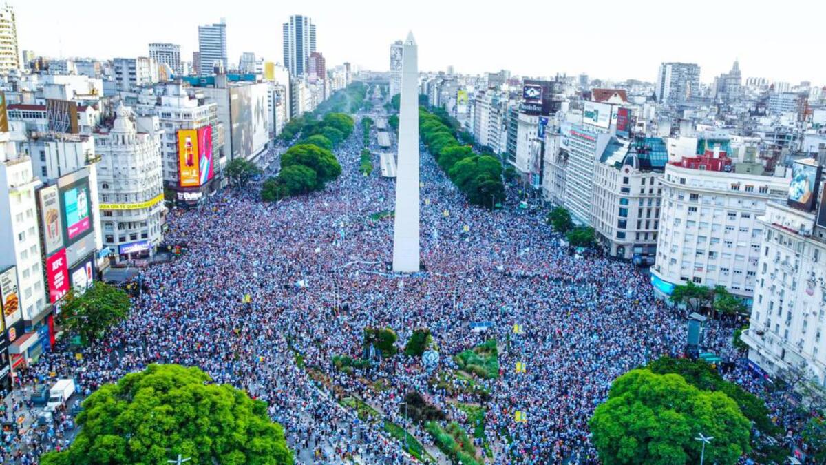 Aficionados argentinos se reunión alrededor Obelisco tras la obtención del tercer título mundial de su selección.
