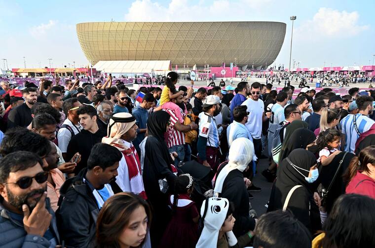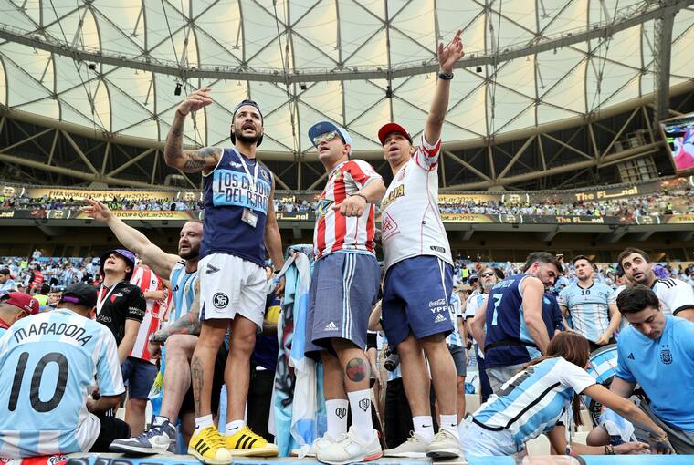 Aficionados animan a sus selecciones antes del inicio del partido entre Argentina y Francia, para conocer al nuevo campeón del Mundo.