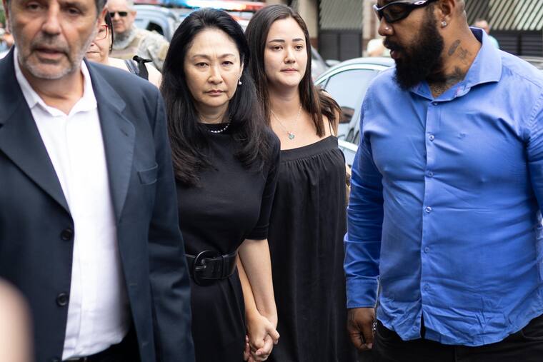 Marcia Aoki, viuda de Pelé. Familiares alrededor del féretro.