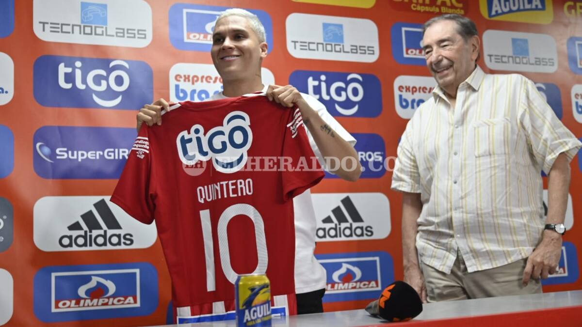 'Complacido de estar acá y de sentir el cariño de la gente desde el primer día, espero darle muchas alegrías a todos. Quiero competir en alto nivel, porque vengo a uno de los grandes de Colombia. Tengo muchas expectativas', afirmó Quintero.
