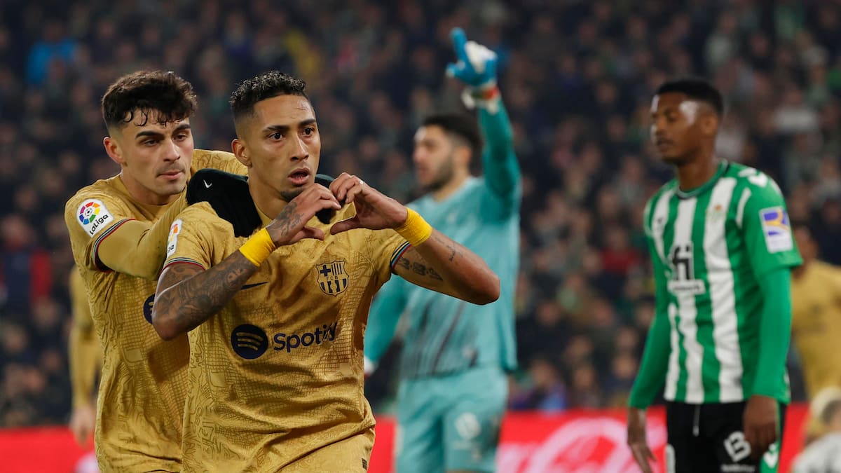 El Barcelona, con sendos goles del brasileño Raphael Dias 'Raphinha' y del polaco Robert Lewandowski en el segundo tiempo, ganó en un partido que controló y en el que tuvo más llegada ante un rival, el verdiblanco, que acortó distancias casi al final, pero que reaccionó tarde con un tanto en propia meta del francés Jules Koundé.