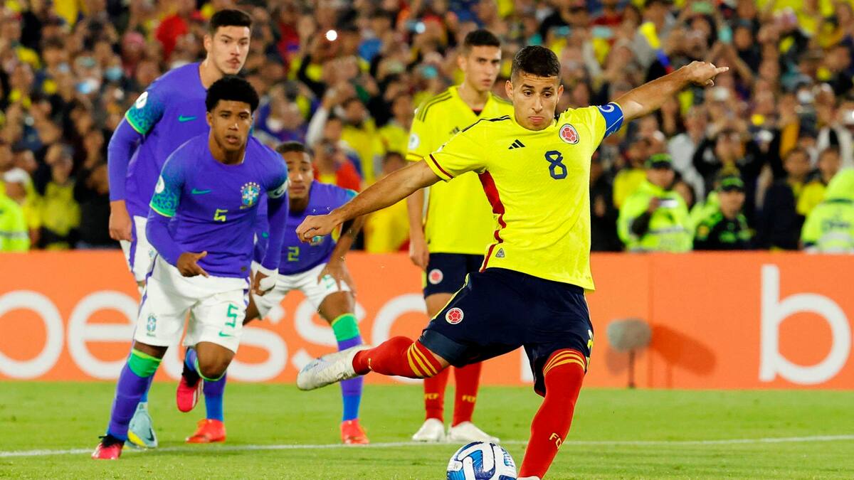 En el estadio El Campín de Bogotá, Colombia y Brasil tuvieron minutos contradictorios y que pudieron definir el juego. A los 53 el arquero Kaique chocó sin necesidad a Alexis Castillo cuando el meta tenía controlada la pelota. Penalti sin discusión.