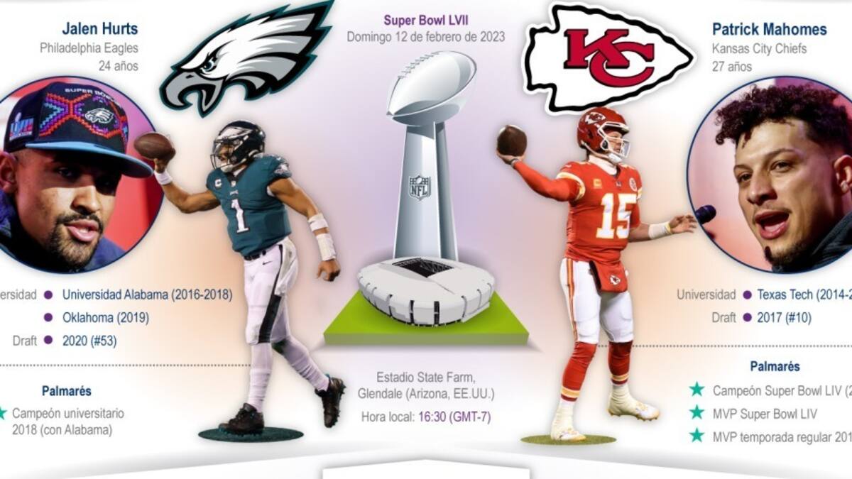 Los Philadelphia Eagles y los Kansas City Chiefs se verán las caras este domingo en el State Farm Stadium de Glendale (Arizona, EE.UU.) para decidir quién será el campeón del Super Bowl LVII de la NFL.