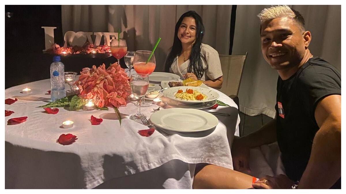 El futbolista del Bucaramanga publicó una foto con el mensaje 'las maravillas de Dios', en el que se le observa abrazado y muy feliz en compañía de su pareja.