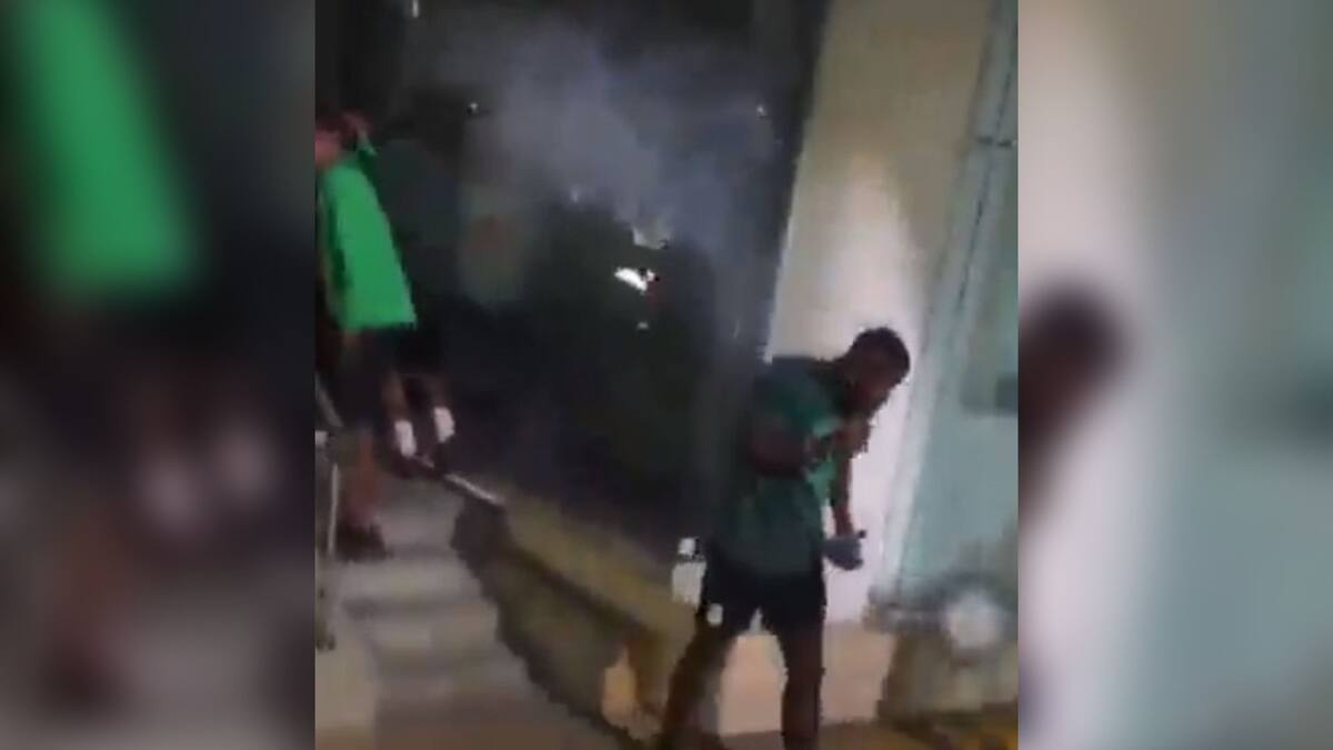 El momento quedó captado en video y circula en redes sociales. En las imágenes se puede observar como los futbolistas se alejan de la zona tras lo sucedido.