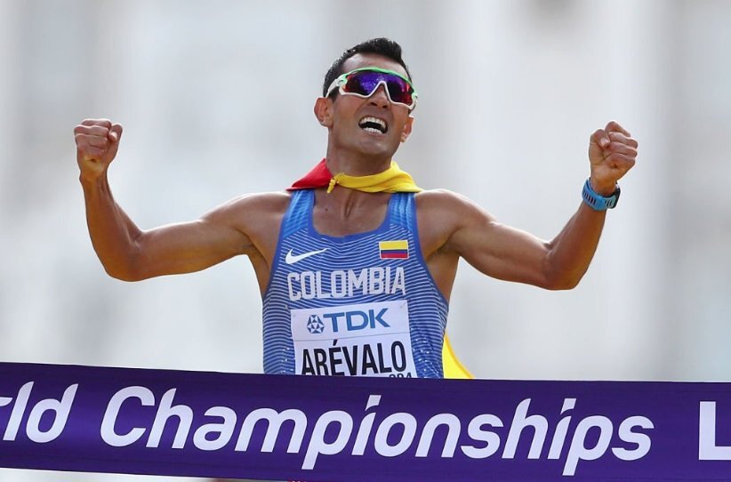 Después, tendría un gran éxito: se pondría la medalla de oro en el Mundial de Atletismo de Londres 2017, con una marca de una hora y 18 minutos con 53 segundos en los 20 kilómetros marcha. La presea de Arévalo fue la sexta en la historia del atletismo colombiano, luego de cuatro de Caterine Ibargüen (dos oros, un bronce y una plata) y una de Luis López.