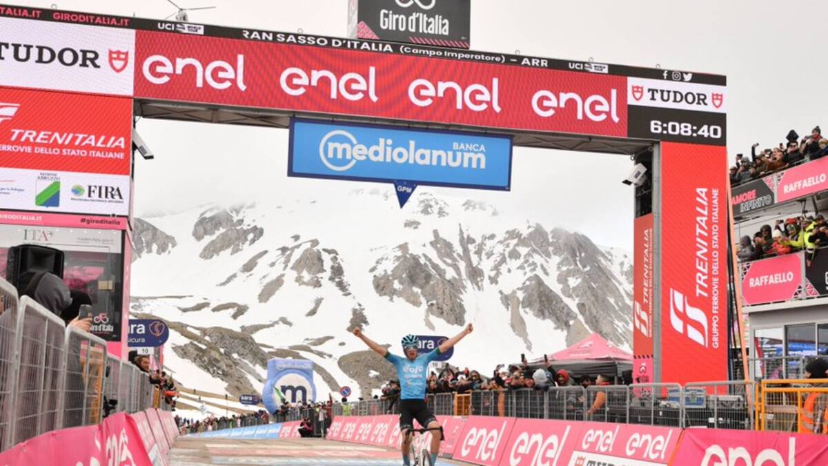 El italiano Davide Bais, del EOLO-Kometa, conquistó este viernes la subida del Gran Sasso en a séptima etapa del Giro, culminando así una fuga que comenzó a mas de 200 km de la meta en lo que fue su primera victoria como profesional.