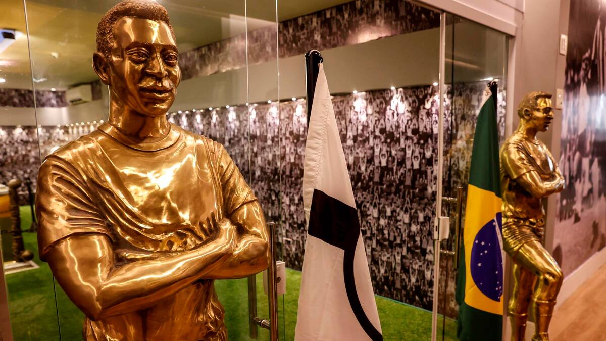 El triple campeón mundial reposa en una sala que respira fútbol por los cuatro costados. A la entrada, dos estatuas de latón de la figura de un Pelé vestido de corto y sonriendo anticipan la majestuosidad del lugar.