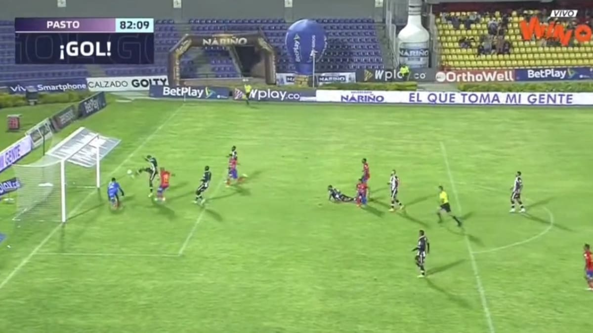 El encuentro entre el Envigado y el Deportivo Pasto, jugado en el estadio Departamental Libertad de la capital nariñense, iba 1-1 hasta el minuto 83, cuando el defensor Jhon Banguera trató de despejar un rebote dentro del área, pero metió la pelota en su propio arco.