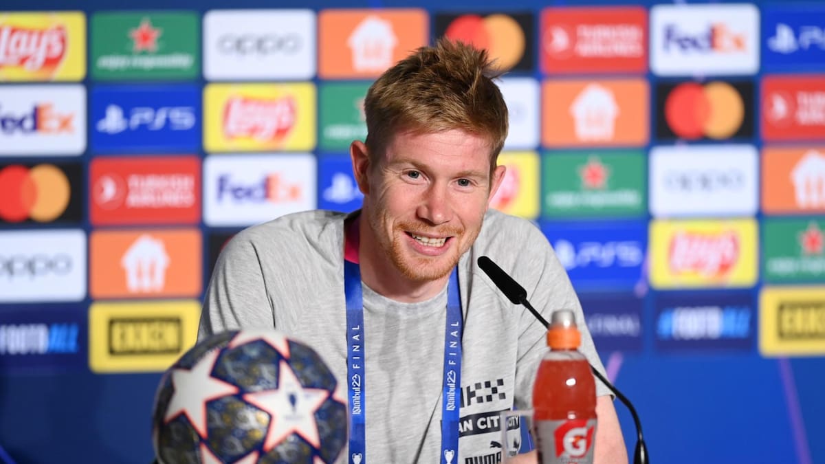 El centrocampista belga acompañó a Pep Guardiola y Rubén Dias en la rueda de prensa previa a la final de la Liga de Campeones de este sábado contra el Inter de Milán.