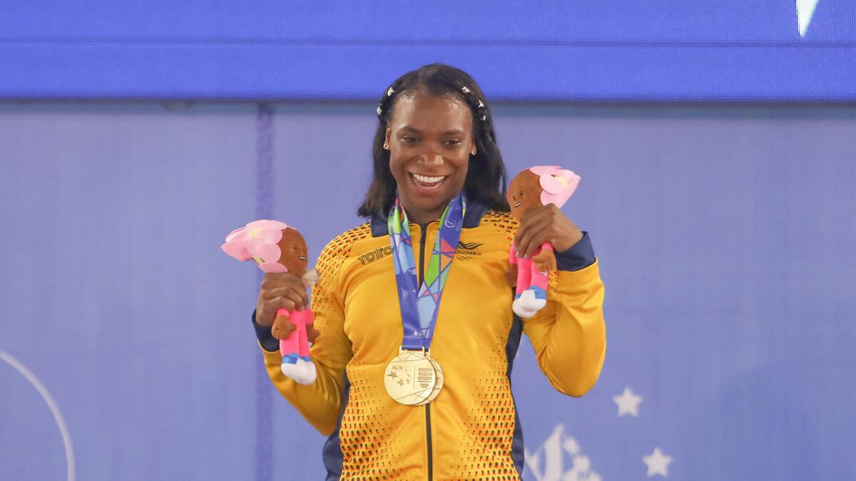 La pesista Yenny Álvarez, abanderada de Colombia en los Juegos Centroamericanos y del Caribe de San Salvador, se exhibió este domingo en la Cuna del Mágico, ratificó su favoritismo y se colgó los dos oros de los 59 kilogramos de la halterofilia, con récord incluido de las justas en el envión.