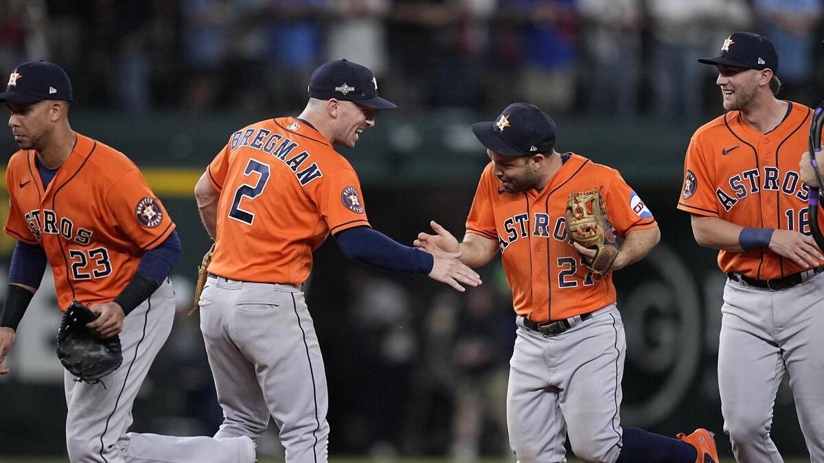El venezolano José Altuve disparó este viernes un cuadrangular de tres carreras en la novena entrada para darle la vuelta al marcador en la victoria de los Astros de Houston 5-4 sobre los Rangers de Texas, para colocarse a una victoria de lograr el pase a la Serie Mundial por la Liga Americana.
