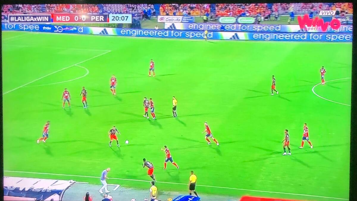 El partido entre Independiente Medellín y Deportivo Pereira arrancó con mucha confusión en la cancha, pues durante el primer tiempo ambos equipos jugaron con uniformes de colores similares, por lo cual no se entendía muy bien qué conjunto tenía la pelota.
