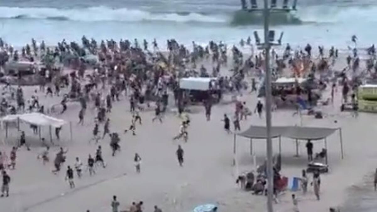 Pero la fiesta fue interrumpida violentamente hacia las 5 p.m. hora local, cuando un numeroso grupo de aficionados del Fluminense atacó a los argentinos y, en medio de varios incidentes y peleas generalizadas, obligó a los rivales a abandonar la playa a las carreras.