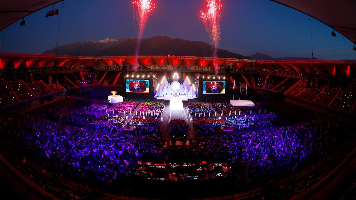 Harold Mayne-Nicholls, director De Santiago-2023, emitió un discurso e hizo el reconocimiento a 13 mil voluntarios.