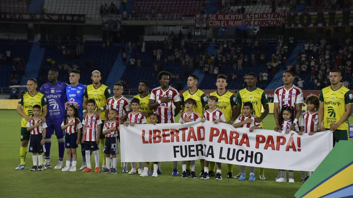 Esta vez el turno fue para Junior, equipo con el que ganó dos títulos de Liga, uno de Copa y otro de Superliga. El cuadro rojiblanco salió con unas pancartas antes del encuentro contra Atlético Huila y los jugadores de ambos oncenos la cargaron y mostraron su apoyo para ‘Luchito’.