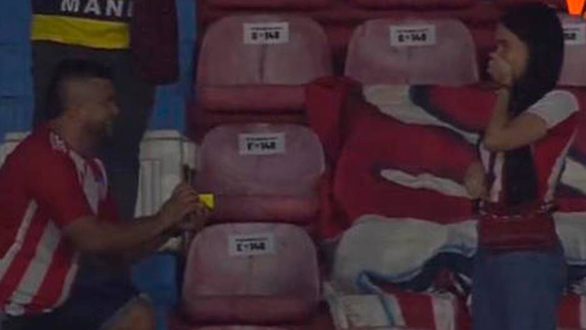 Durante el entretiempo del partido disputado en horas de la noche de este sábado, en las gradas del Coloso de la Ciudadela se vio a un hombre tomando la decisión de pedir la mano de su pareja para unirse en matrimonio.