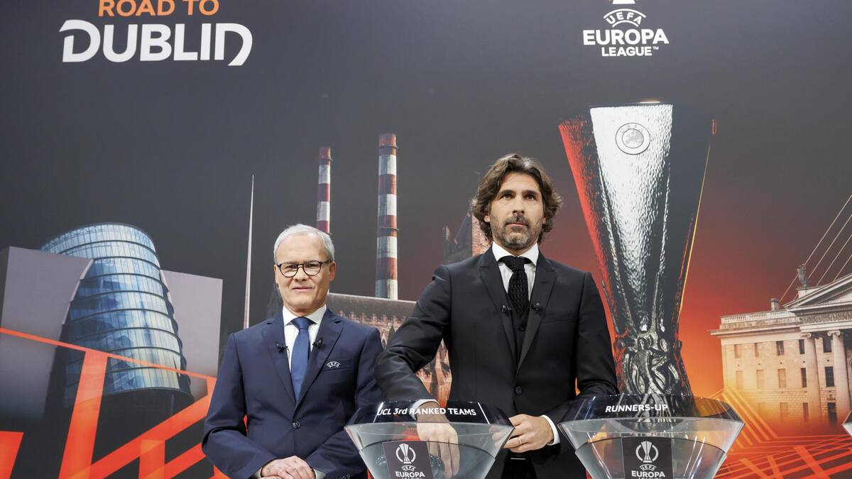 Con el exjugador francés Julien Escude, campeón del torneo con el Sevilla en 2006 y 2007, como mano inocente, la fortuna volvió a emparejar al conjunto romano y al neerlandés, que ya se encontraron hace dos campañas en la final de la Liga Conferencia y la pasada en la semifinal de la Liga Europa.