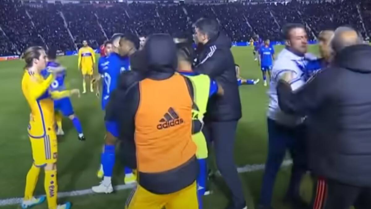 Todo el barullo comenzó cuando el cronómetro marcaba el segundo minuto de adición (90+2), ya con el resultado a favor de los locales por un gol en contra de Diego Reyes. Una fuerte entrada de Juan Pablo Vigón sobre el juvenil Mateo Levy y un contacto en un encare de Eduardo Tercero con Charly Rodríguez dieron pie para una bronca entre integrantes de ambos conjuntos.