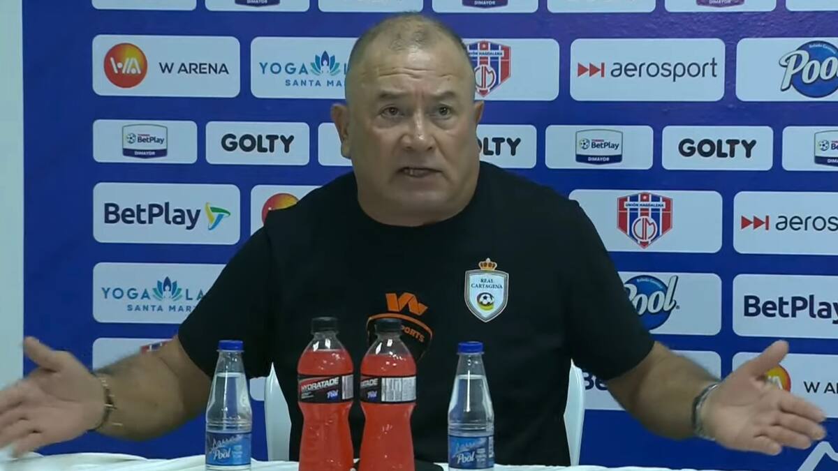 'Buenas noches, profe, nos volvemos a encontrar. No es coincidencia, tres veces, hoy es la tercera. Impotencia, pelea. Lo mismo que el año pasado. No había bajado este año a rueda de prensa, bajé porque vino usted, me da ‘la papaya’, y bueno, aquí estoy. ¿Cuál es el resentimiento, cuéntele a Colombia, que tiene con estos colores y Unión Magdalena? Muchas gracias', expresó García, provocando una respuesta vehemente del timonel del club auriverde.