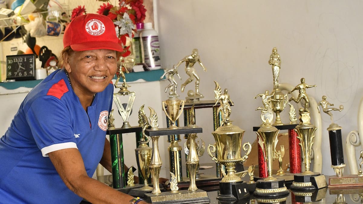 'Hago y vendo lazos, vendo dulces, bailo, soy modista, he canjeado trofeos que he ganado por dinero y toco muchas puertas buscando recursos para comprar uniformes, para financiar una inscripción, para adquirir implementos deportivos. Muchas veces me voy a la cama sin saber si tendré para un tinto en la mañana, pero todo se lo dejo a Dios. No me estreso. Yo creo que esa ha sido la clave para llegar a los casi 80 años con vida y trabajando en esta labor, que es dura, ingrata por momentos, pero muy linda. Siempre digo: Dios resolverá. Así voy por la vida, alegre y llena de optimismo. Y mira, siempre he conseguido lo que me he propuesto. Una vez, incluso, sacrifiqué un dinero que tenía ahorrado para el grado de mis hijas para poder pagar unos papeles que necesitaba para la construcción de la cancha de acá (risas). Este año la inscripción a la Liga está en vaina, porque no hay plata ni tampoco uniformes, pero Dios proveerá, vas a ver tú', dice con nostalgia, pero a la vez con orgullo, rememorando los sacrificios que ha hecho por sus niños.