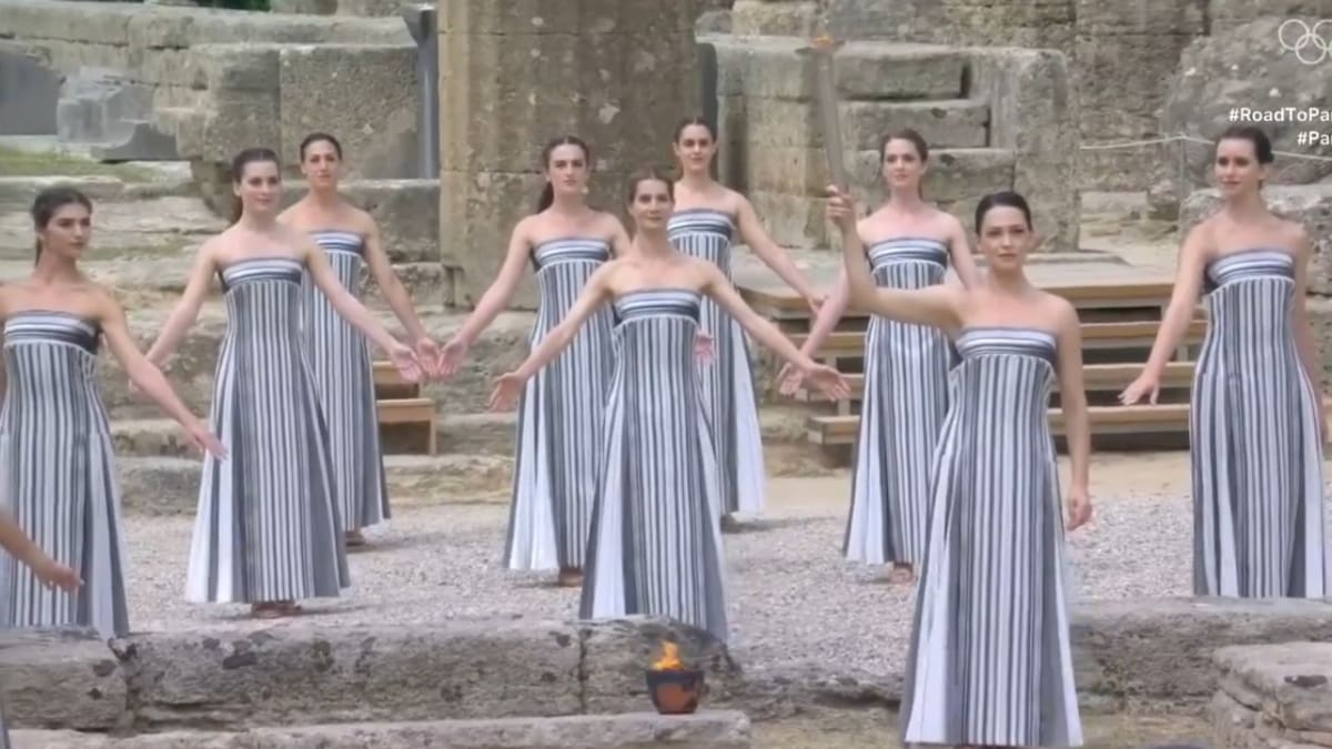 El encendido de la antorcha olímpica se celebró este martes en las ruinas de la antigua Olimpia, en una ceremonia tradicional en la que se invocó al dios Apolo y se entregó la llama al primer portador, que comienza su recorrido hacia París para los juegos de este verano.