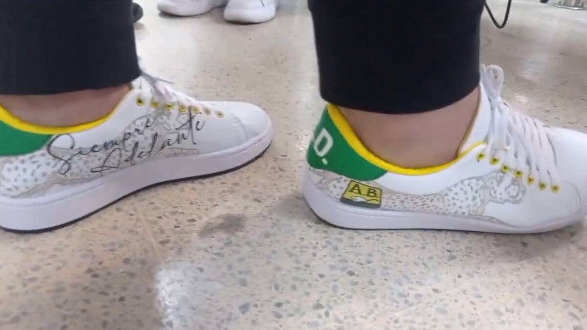 En cada una de sus declaraciones previas al juego contra los ‘Tiburones’, Dudamel pide un respaldo enorme y decidido para sacar adelante los tres puntos. Este jueves, en un encuentro con los medios, acudió con una pinta bien ‘leoparda’ y con un mensaje en sus zapatos: “Siempre adelante”, en el izquierdo, y “ni un paso atrás”, en el derecho.