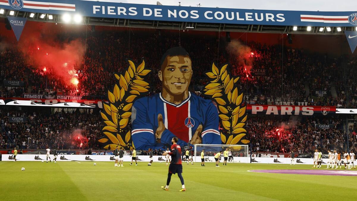Antes de comenzar el partido, los ruidosos aficionados radicales del fondo Auteuil desplegaron un enorme tifo con Mbappé de medio cuerpo rodeado de unos laureles y encendieron bengalas rojas, y el jugador fue a saludarles y agradecerles el gesto.