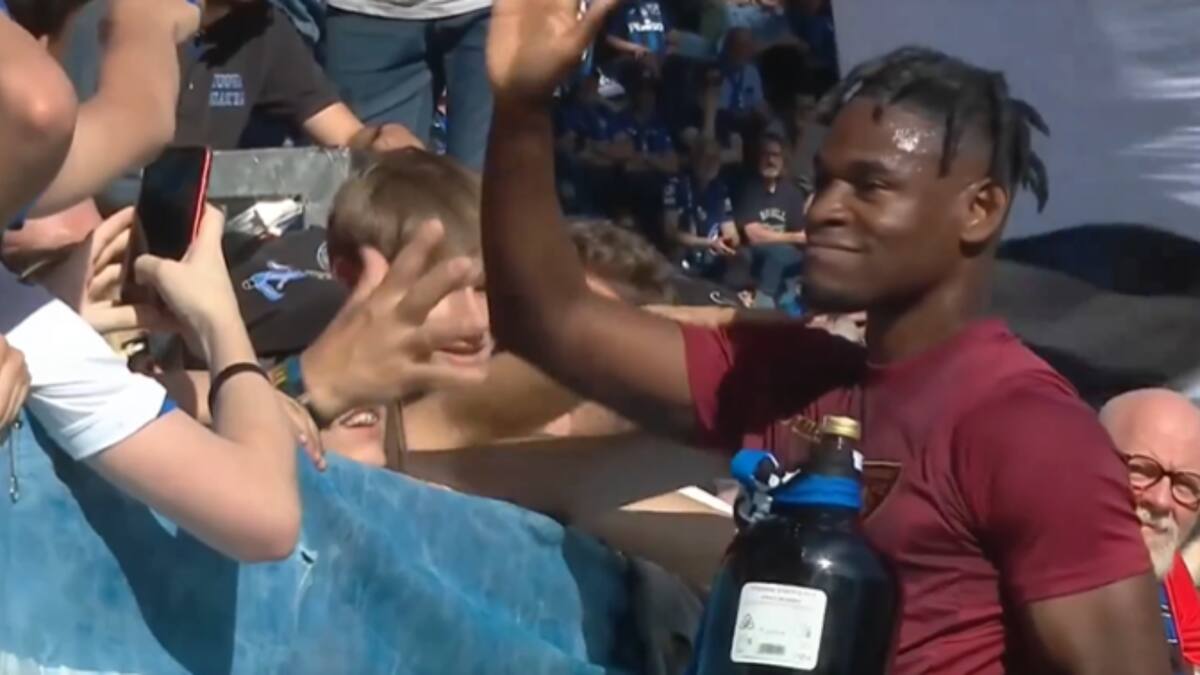 Zapata saludaba a los hinchas de Atalanta, quienes gritaban su nombre al tiempo que aplaudían.