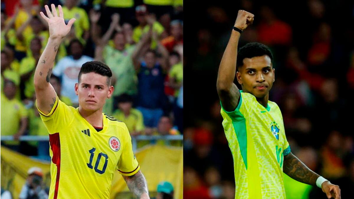 Colombia y Brasil se enfrentan el martes en la última jornada del Grupo D de la Copa América en un partido que encierra un duelo gigante entre dos camisas ‘10’ de pasado y presente madridista: James Rodríguez y Rodrygo.