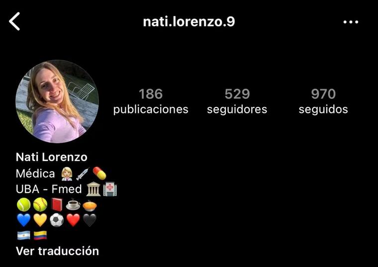 En su cuenta de Instagram indica que es médica de la Universidad de Buenos Aires, amante del café, el fútbol y los libros.