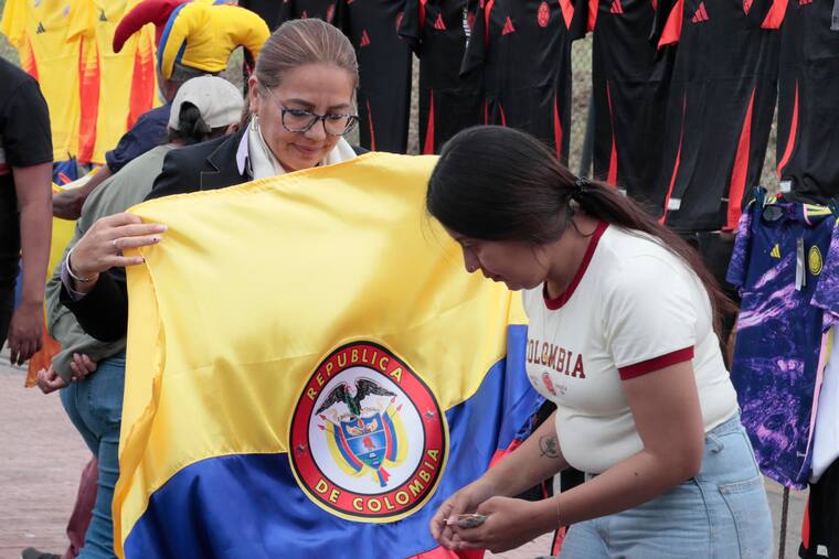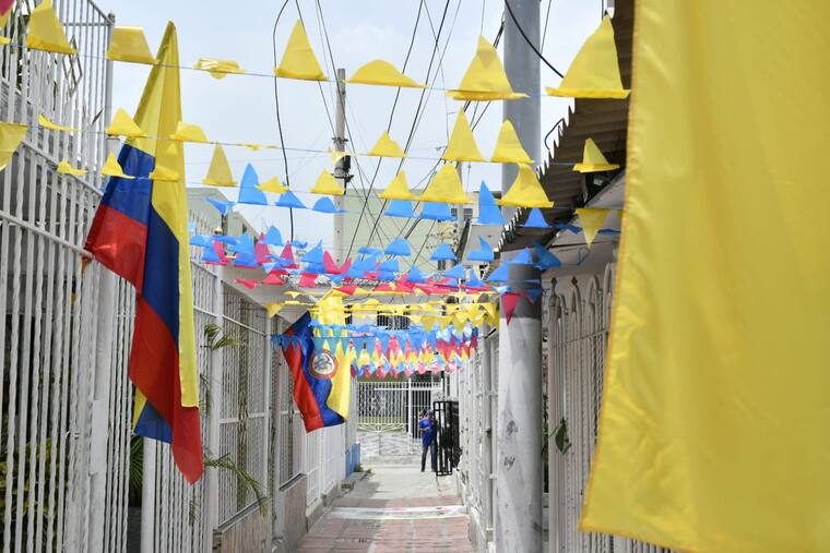 1:00 p.m. En Bogotá, las banderas de Colombia adornan las calles.