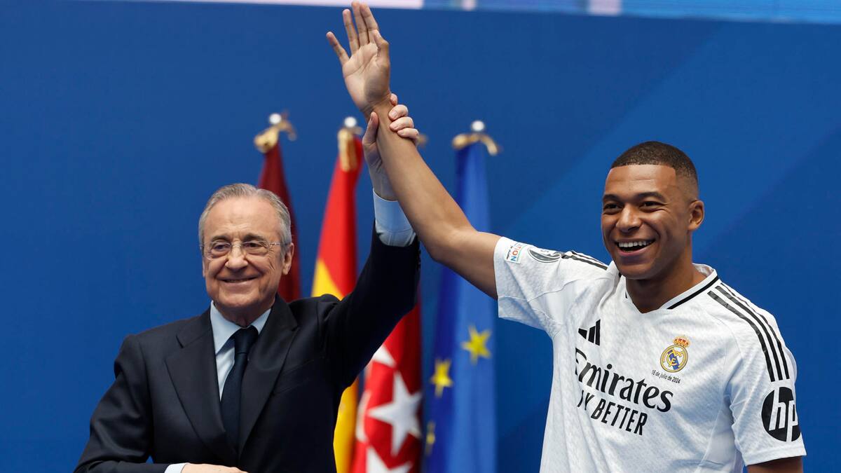 Además, el presidente del Real Madrid obsequió a Mbappé con una réplica del estadio Santiago Bernabéu, la que será su nueva casa desde esta temporada y donde se llevará, desde las 12:00 horas CEST (-2 GMT), según la hora prevista, el acto de presentación multitudinario de la estrella francesa.