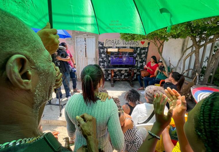 Finalmente, pasadas las 11 de la mañana, con la señal ya lista, la atlanticense salió al escenario. Apenas las cámaras la enfocaron la algarabía de sus familiares y de varios de sus vecinos se hizo sentir.