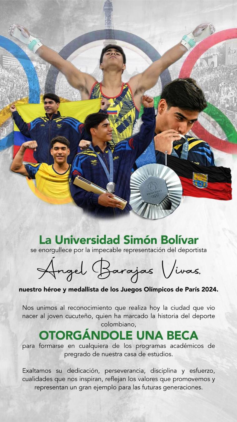 Con este reconocimiento, Unisimón exalta la destacada trayectoria y actuación de Ángel en los Juegos Olímpicos de París 2024, donde obtuvo la medalla de plata en Gimnasia Artística, un logro histórico que refleja su trabajo arduo, disciplina y talento excepcional. “Esta será una forma de apoyo y estímulo para que Ángel continúe con su formación profesional y deportiva”, indicó Yolanda Gallardo de Parada, directora general de Unisimón, sede Cúcuta.