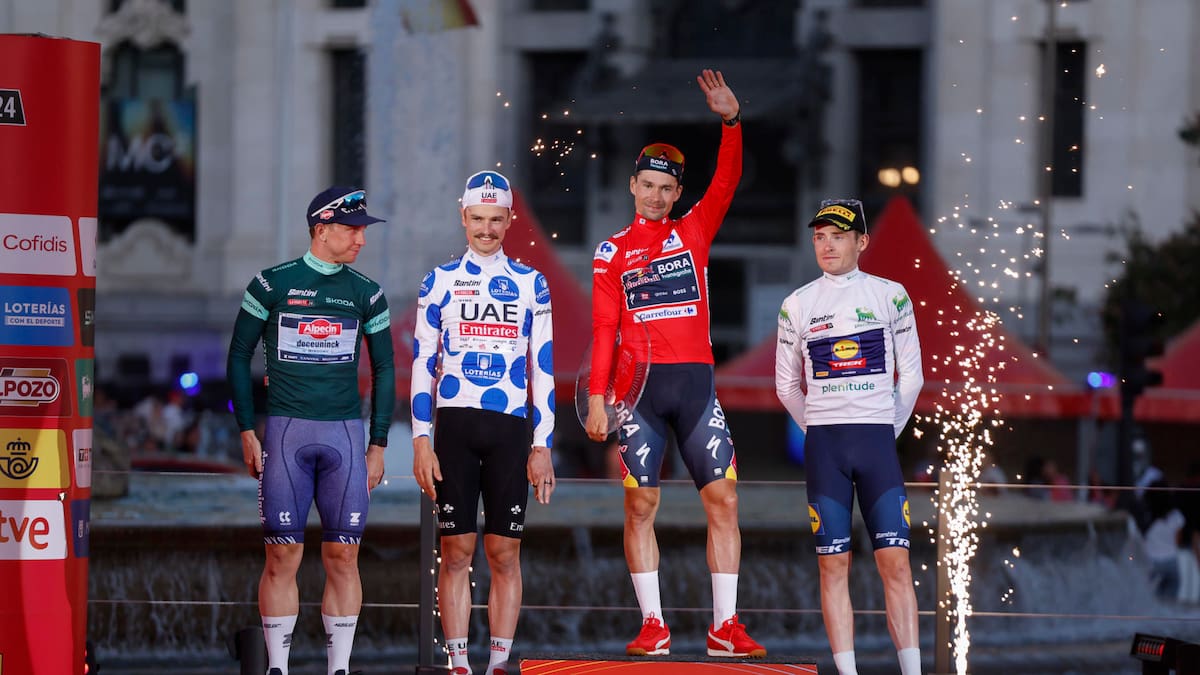 Tres años después del triplete, Roglic volvió a Cibeles para escuchar el himno de su país enfundado en el maillot rojo, acompañado en el podio por Ben O'Connor y Enric Mas. Un colofón merecido para el mejor ciclista en las 79 ediciones de la Vuelta, y una de las referencias del pelotón actual.