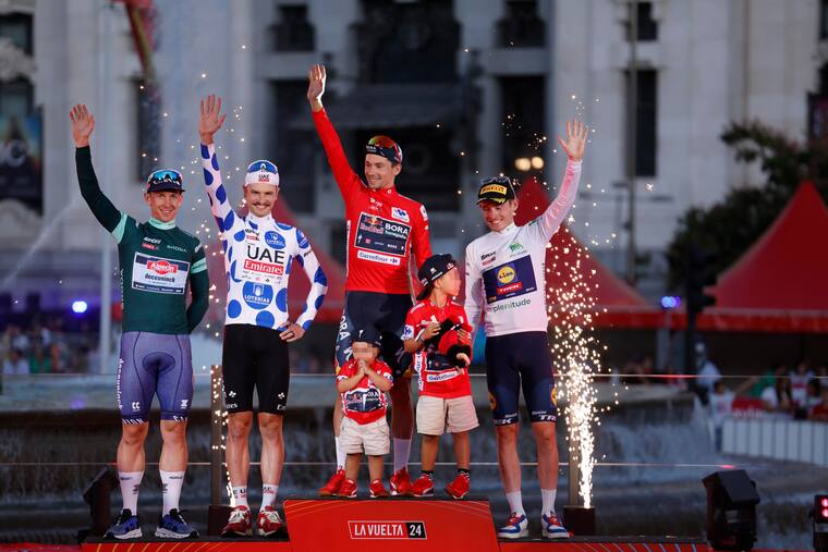 También destacaron con sendos tripletes de etapa el belga Van Aert, retirado por una grave caída cuando llevaba el maillot verde y el australiano Kaden Groves, el más regular de la Vuelta. En la montaña hubo emoción hasta el final, y otro ciclista 'aussie', Jay Vine, se llevó el maillot de lunares azules.