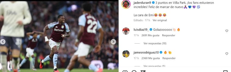 Luis Díaz le puso: “Golazoooooo”; mientras que James le compartió un emoticón de fuego y otros de aplausos por su anotación.