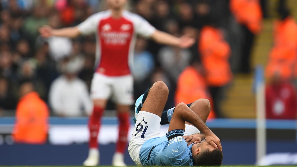 A los 3 segundos de partido, Rodri recibió un golpe de Kai Havertz en una clavícula y a los 16 minutos se dañó la rodilla derecha cuando acudió a rematar un saque de esquina al primer palo.