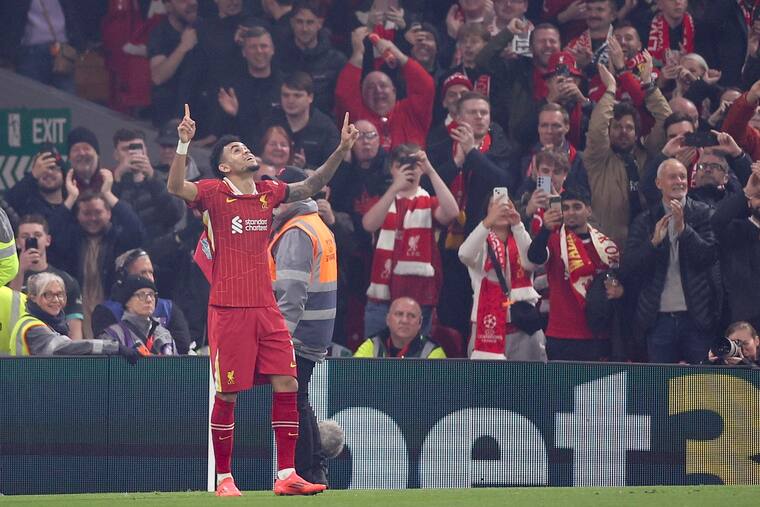 Anfield ya cantaba con fuerza el “Luis Díaz, viene de Barrancas y juega para el Liverpool”, pero lo hizo aún con más fuerzas cuando Díaz culminó un contraataque de Darwin Núñez en el minuto 92 y completó el primer ‘hat trick’ de su carrera con los ‘Reds’.