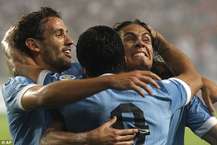 Uruguay: Juan Castillo; Bruno Silva, Carlos Valdéz, Martín Cáceres, Álvaro Pereira; Diego Pérez, Walter Gargano, Cristian Rodríguez; Luis Suárez, Diego Forlán, Edinson Cavani.
